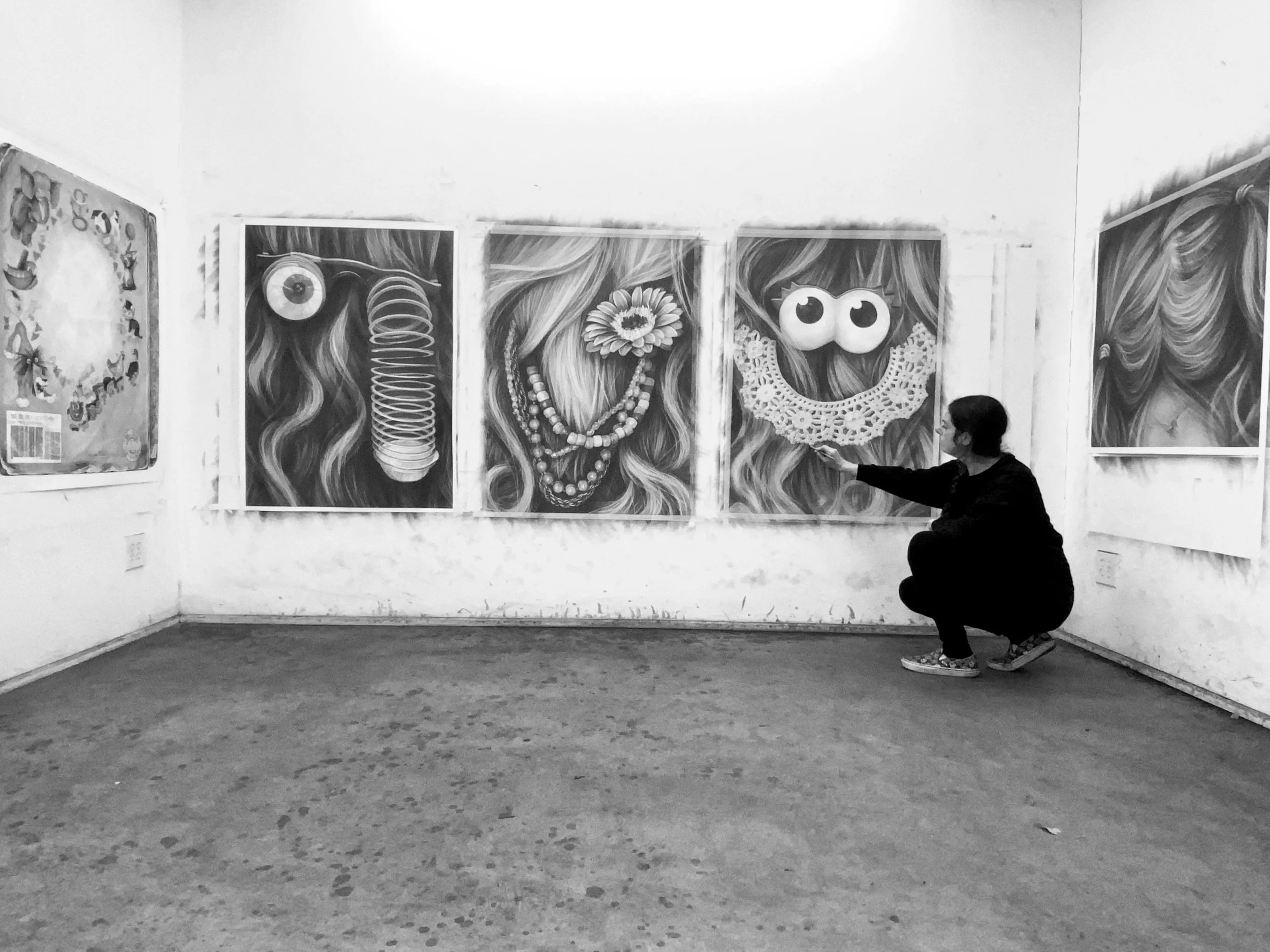 The crafts featured in these monumental sized still life drawings are created in tandem with my children. Both drawing and crafting have the magical ability to slow down time and shape memory. These acts of observation and creation provide a space for us to be productive together, leaning into being fully present.